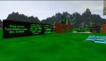 Rand der Welt Touribau sind Texttafeln aufgestellt, auf denen die ersten